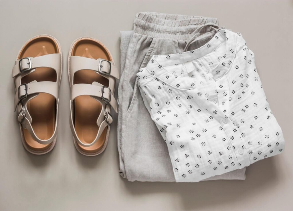 A summer-ready outfit could include linen shorts paired with a loose cotton shirt and comfortable sandals. This look is practical, breathable, and perfect for daily wear in warm climates.